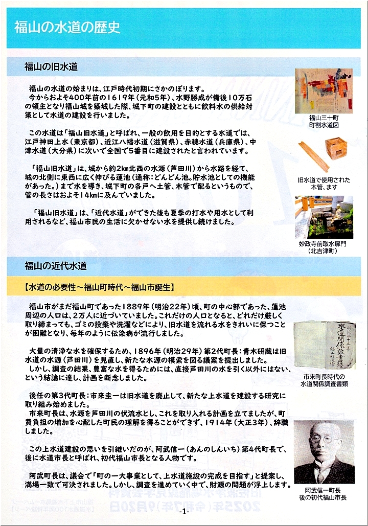 頂いた資料で「福山の水道の歴史」を見てみますと、