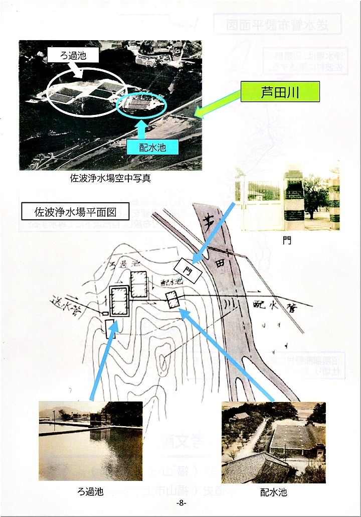 熊野町渓谷に築造した貯水池を水源として、自然流下により佐波町城山の浄水場から旧福山市へ給水するもので、1925年(大正14年)11月に竣工通水式を行いました。旧佐波浄水場は、福山市で初の近代的浄水場として建設され、福山市が近代都市として発展するための基礎となりましたが、老朽化により1977年(昭和52年)に休止、1989年(平成元年)に廃止となりました。