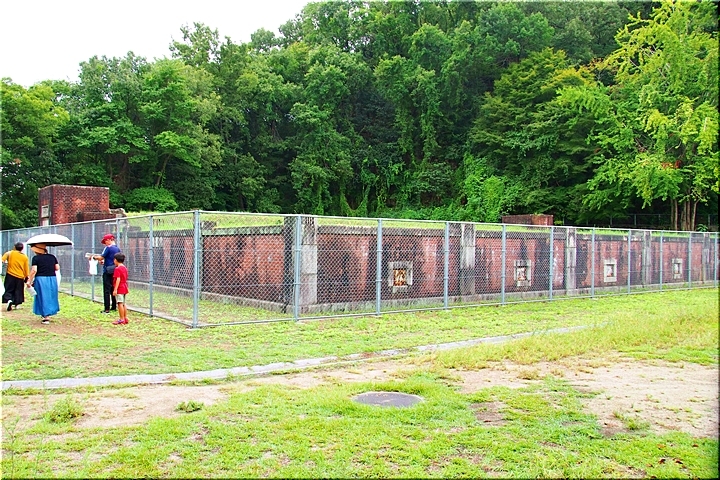 この旧佐波浄水場$ユは、現在「佐波城山公園」として整備され、一般開放されておりまして、GONsanも二度ばかり訪れ、煉瓦造りの配水池∞浄水井上屋∞門%凾ヘ外から拝見しておりますけど、今まで中に入った事はありません。