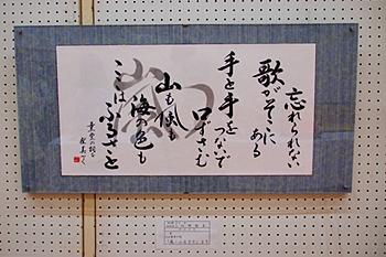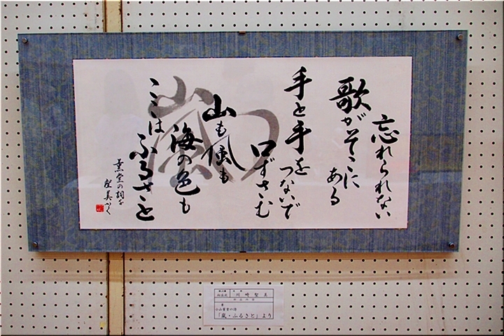 時間を確認しますと、未だA.M.9:25で、スタート時間の10:00には暫く時間がありますから、先に受付のみ済ませまして、史跡めぐりの資料を頂き、まずは交流館内の作品展示コーナーを拝見します事に(^.-)☆