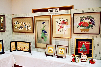 向丘中・美術部の皆さんの作品に続いては、手芸∞木目込み∞押し絵≠フ作品の展示ですけど、いずれも皆、手が込んで大変キレイな作品です(^_^)v