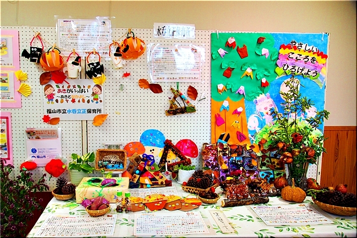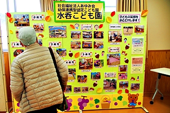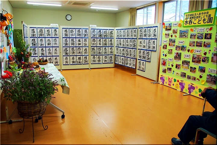 この部屋には、水呑立正保育所∞水呑こども園≠紹介します作品の展示もありました。