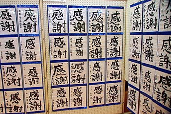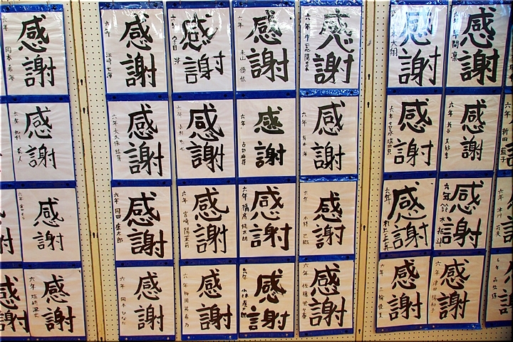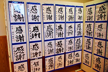 皆さん、画数の多い「感謝」を綴っておりましたけど、画数が多いだけに仲々バランス良く書けませんようですネ。でも、どれも力強く書いておられます。