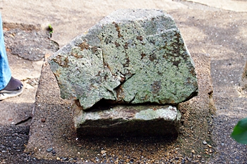 40センチ位の自然石を積み重ねたもので、線香の灰を疣(いぼ)に付けると、疣がなくなると云われている。今でも賽銭が上がっています。