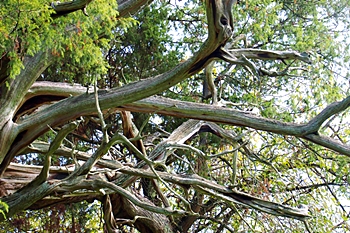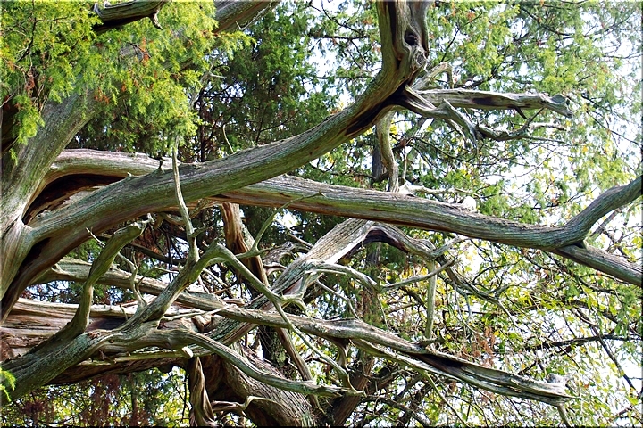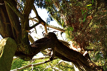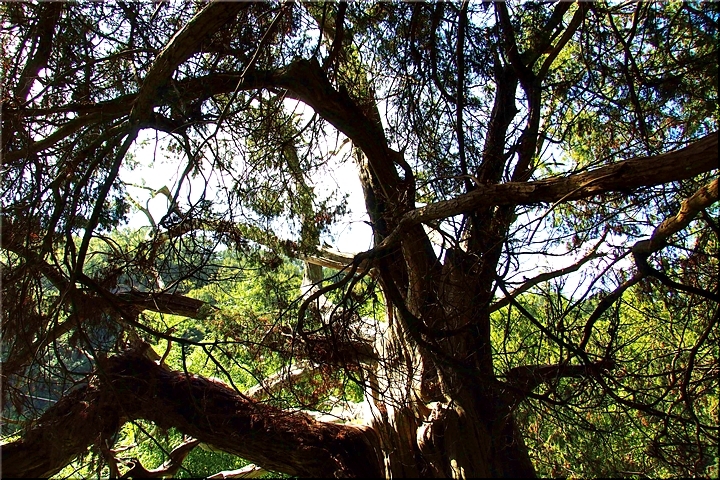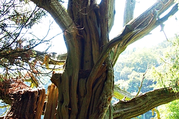 横にグッと伸びて、ある程度主幹から離れてから再び上方に向けて幹を立ち上げている。樹齢は1,000年を越えるというが、なんという生命力だろうか。