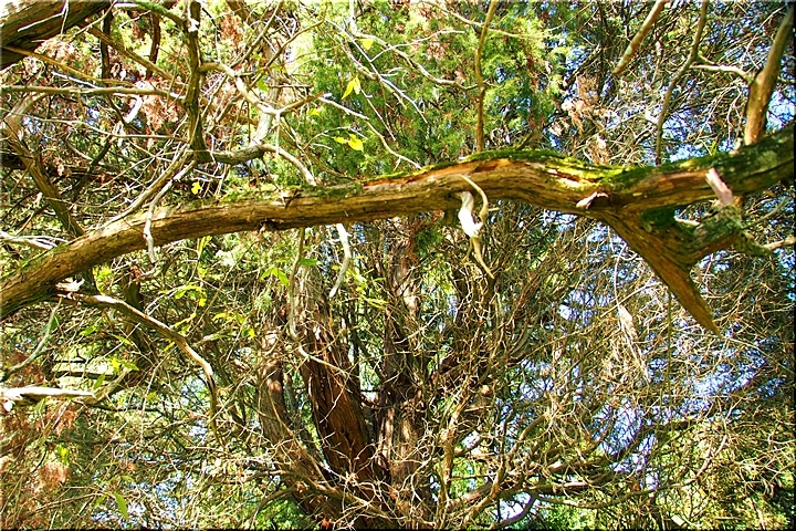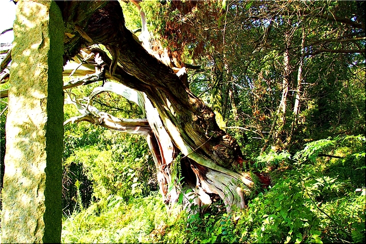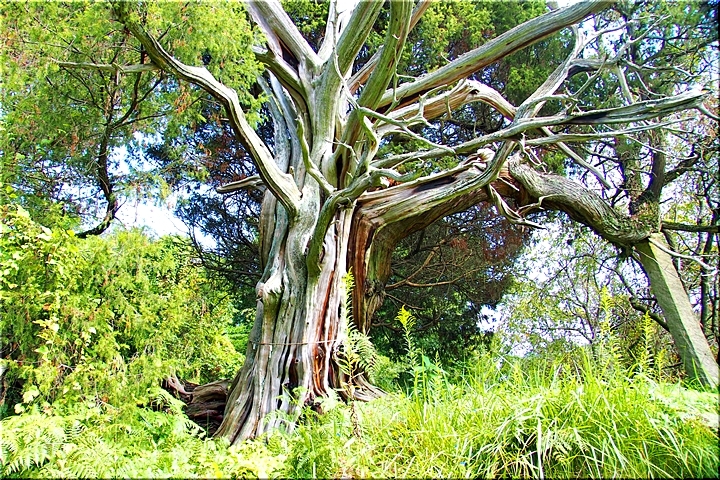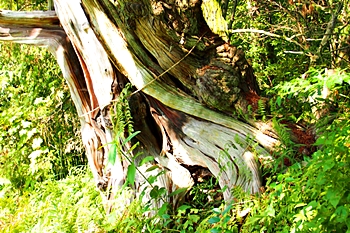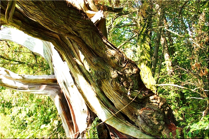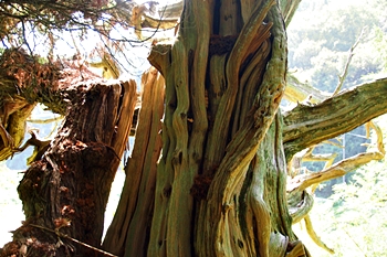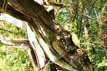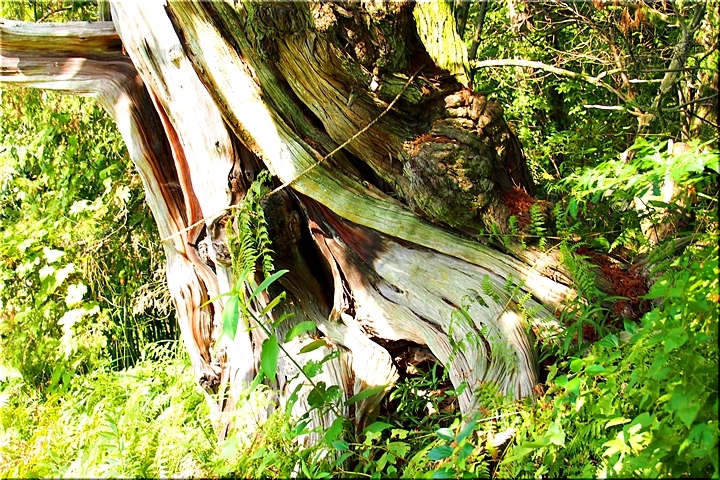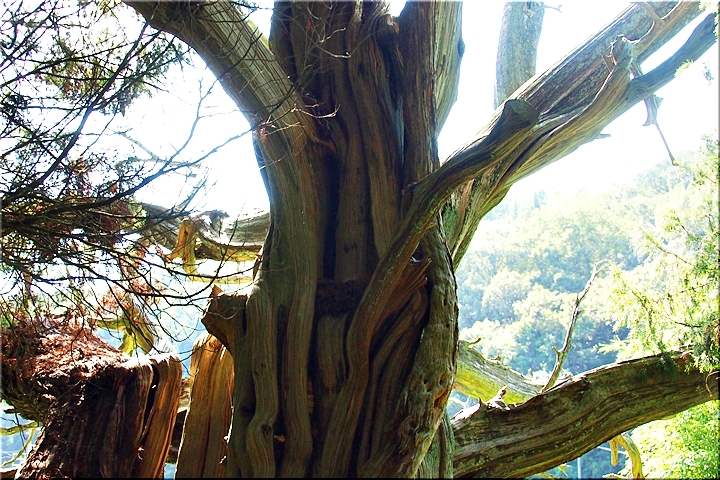 県北の山を歩いているとブナの白骨林に出会うことがあり、周りに霧などが出ていると大変不気味な雰囲気がするものだが、この木は白骨化しているにもかかわらず、不思議な力強さを感じるネズの巨樹である(県下1位)。