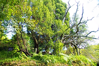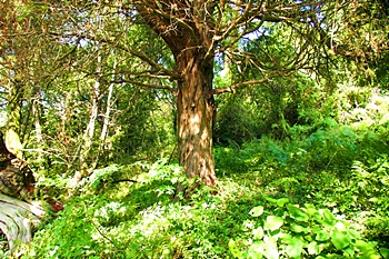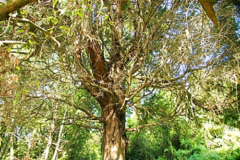 主幹の目通り周囲は4.5m、樹高約8m、主幹は枯死していますが、ムロノキは枯死しても腐敗しにくいらしく、主幹は白骨化していて、それがこの木をより神秘的な姿にしているようです。また、側枝は旺盛な生育を見せており、まだまだこの雄姿を見せてくれそうです。