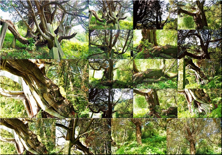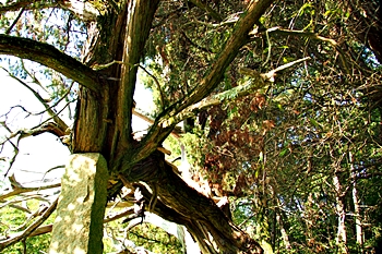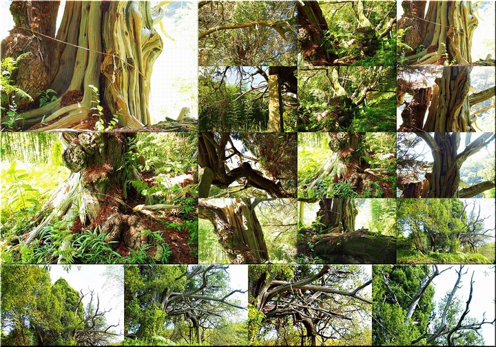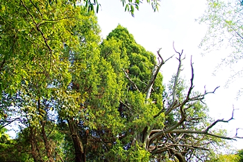 枯死した主幹が、まるで王のように生樹を付き従えているのかと見まがう印象的な巨樹である。