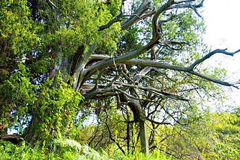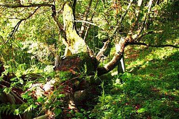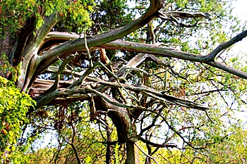 東側に地を這うように伸びた側枝は、主幹が枯れたにもかかわらず旺盛な勢いを見せている。