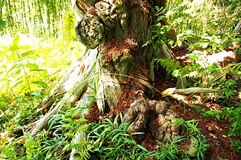 主幹は落雷で枯れてしまったそうだが、ブナのように朽ちることもなく、本当に枯れているのかと疑いたくなるほどだ。