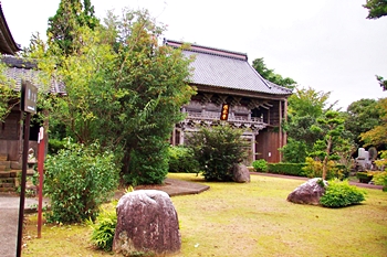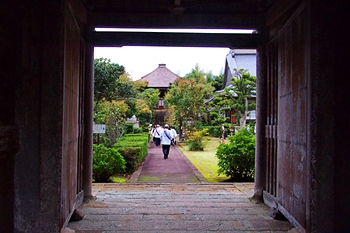 そして、引き続き参道を真っ直ぐ進みますと、正面に祖師堂≠ナす。祖師堂≠フ手前を右に進みますと、本堂≠ノ到着となりました。