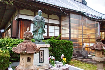 天文二十一年 大泉坊日成上人の創業により初めて、斯堂の建立を見たり。その後、七十年を経て、日衍上人檀越味方氏の外護を得て、現今の布金壇上に再建す。それ以来、百数十年を経て、現今の祖師堂即是なり。