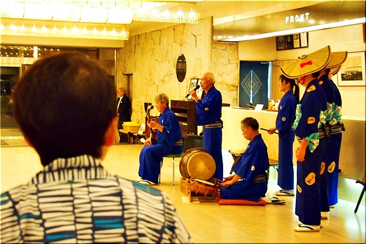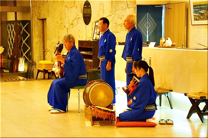 で、夕食を終えましたこの日の夜は、まず、佐渡おけさ公演≠鑑賞し、明日の夜に北沢浮遊選鉱場のライトアップ見物≠楽しみます事に(^.-)☆