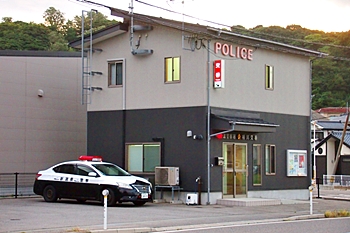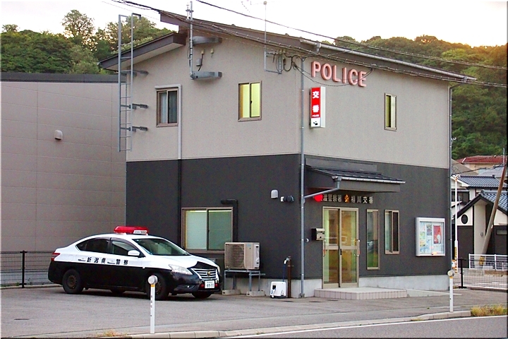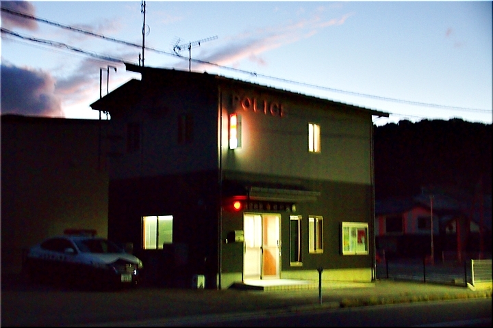 この看板を横目に通り過ぎますと、隣接に、初めて灯りの点灯した建物が…注視しますと、ふ〜ん、建物にはPolice≠フ記載が…佐渡警察署相川交番≠ナありました(^.-)☆