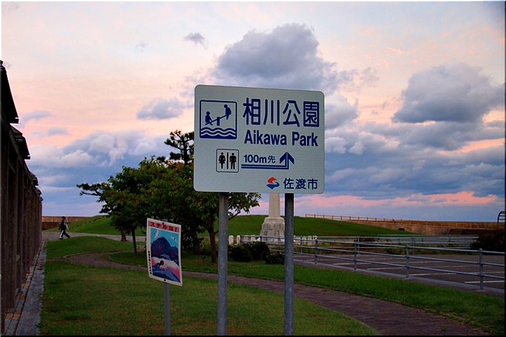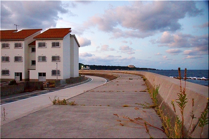 依然として未だ暗い中を、佐渡市消防本部相川消防署、佐渡市役所相川支所、相川バスステーション、相川地区公民館、相川総合体育館…等の建物を左手に見ながら進みます。そぅそぅ、そぅ言えば、先ほど通過しました相川消防署の前辺りに、「相川・羽田の浜」と記載の塀の一部が保存されました遺跡らしきモノがありましたけど、う〜ん、ひょっとしたら、今こぅしてGONsanが歩いています歩道が昔の護岸跡≠ネのかも…暗闇でよく分かりませんから、帰路で再度確認してみましょうか(^.-)☆