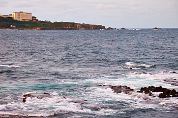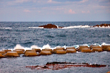 洗顔等を済ませ、出かけます準備が整いますと、それでは今から、朝のウォーキングにと出発です。が、何処をどぅ進んだらイィものか(^-^)とりあえず、ホテル前の岸壁から日本海の様子を確認です。