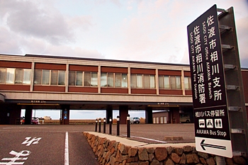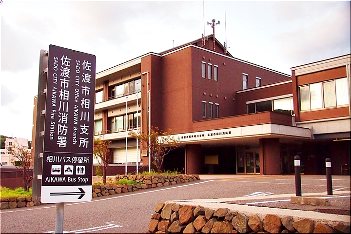 危うく忘れて素通りしてしまいますところでありました。相川支所≠フ裏側・護岸から駐車場を抜け表側に(^-^)