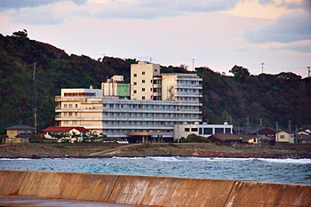 窓際から外の様子を伺いますと、まだ真っ暗で、周辺の様子はよく分かりません。ただ、波の音で、岸壁に押し寄せています様子が伺えます。
