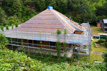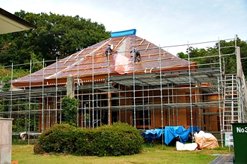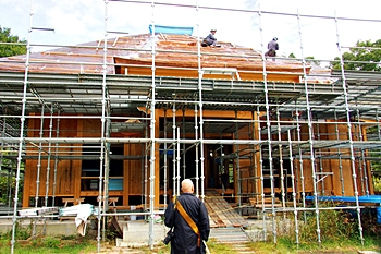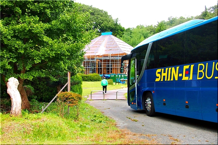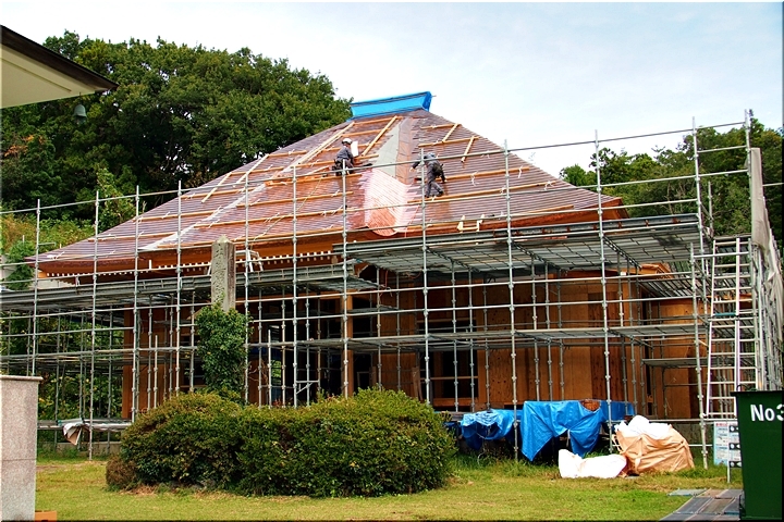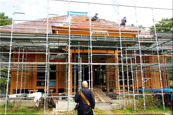 バスが妙照寺に到着で、社外に出ますと、眼の前に再建中の本堂が…