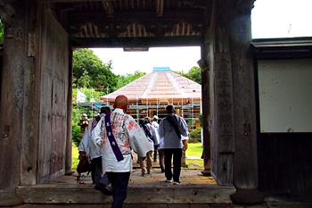 山門から境内に入りますと、57世・鈴木日教貫首(横浜市戸塚区蓮久寺より晋山)が迎えて下さいました。