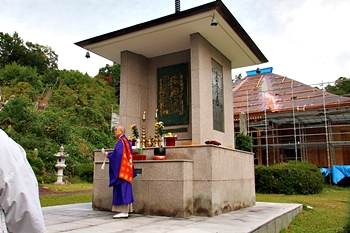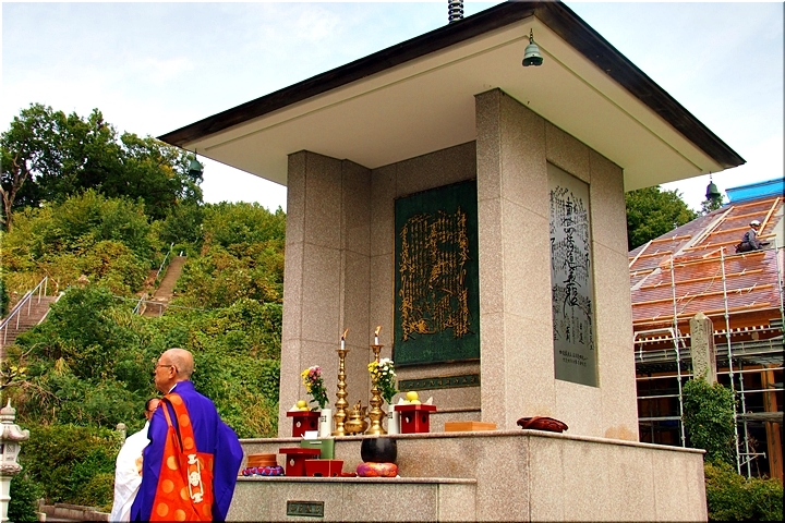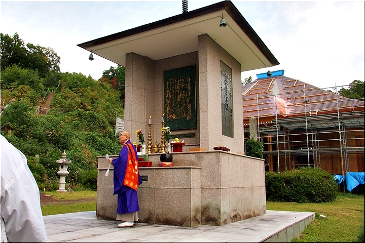 本堂は再建の真っ最中ですから、本日の御開帳は曼荼羅奉掲塔≠フ前で執り行われますのでしょうね(^-^)//"