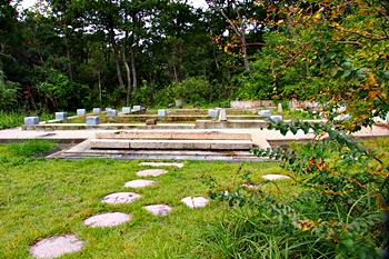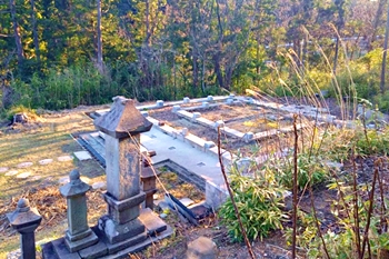 境内のほぼ中央部に「曼荼羅(御本尊)を安置した石造の奉掲塔・顕彰碑」が存在です。これは焼失を免れましたのでしょうネ…