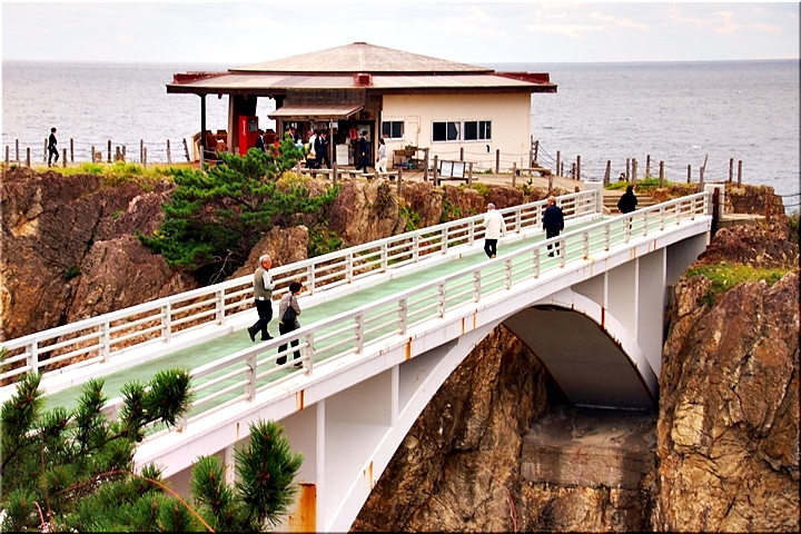 若者の脳裏に、揚島に吊橋掛けたれば海の時化にも関わりなく一時に多くの人が天下の景勝、尖閣湾を島の上より一望すること可能なりと、揚島に架橋の夢芽生えたり。若者は同志ににその夢語らへど、時は日中戦争より第二次世界大戦へと向かひつつありし頃とて、夢のまた夢と消え失せにけり。