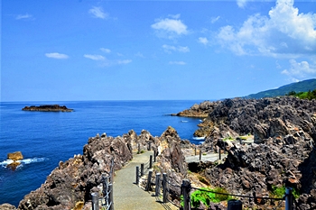 尖閣湾は姫津から北狄まで約3kmの海岸に広がる5つの小湾の総称です。天下の絶景と賞され世界一と呼ばれている北欧ノルウェーのハルダンゲル峡湾の景観に勝るとも劣らず、正に東西両洋に対をなす海岸美として『尖閣湾』と命名されました。昭和46年には海中公園に指定、さらに平成8年には日本渚百選に選定されています。