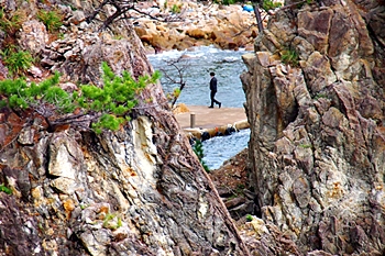 この地が、尖閣湾としてよに知られ始めし頃、時折り訪れし客を小舟にて案内せし若者居たり。