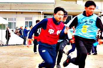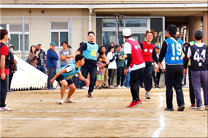 これに、最終種目年齢別リレー(男子)≠フ得点を加えますと、中村+3≠ナ南新田+4≠ニ言う事は、両チームとも「53得点」で並びますネ。