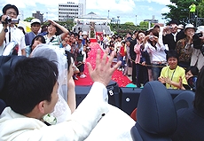 ばらのまち福山の最大の祭典「福山ばら祭2006」(福山祭委員会主催)が二十日、福山市の緑町公園とばら公園を主会場に開幕した。祭りの原点となるバラ展開始から五十年、市制施行九十周年の節目となる。朝まで残った雨も午前十時からのオープニングセレモニー直前に上がり、見ごろを迎えたバラが来場者約一万二千人(主催者発表)を出迎えた。