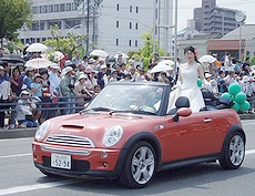 (左)昨日のローズウェディングを終えた新婚sanのお二人も再度パレードで登場でした(^_^)v