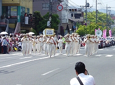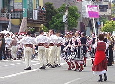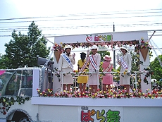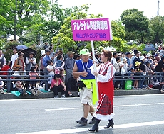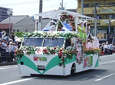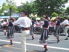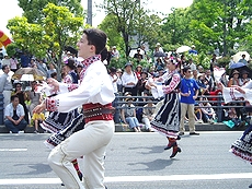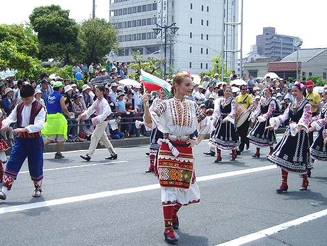 ◆バラ祭りでのこの方達の踊り、実に上手でキレイだなぁ〜と感心して見ていたのですけど…挿入しています画像は、先日“福山バラ祭り”の一コマなんですけど、この方達の踊り、実に上手でキレイだなぁ〜と感心しながら見ておりましたGONsan。何でこんなにお上手なんだろぅ?と不思議だったのですけど、ふん、ふん、この方々は福山市と友好都市の関係にありますブルガリアのプロの民俗舞踊団の方達だったようですネ(^.-)☆どおりでお上手なハズですよネ(^_^)vそれにしましても、わずか20名ばかりのこの方達でしたけど、洗練された息の合ったスマートな踊り…GONsanも含みました実に大勢の方々が思わず拍手してしまいましたよ(^_^)vこの方達がプロの民俗舞踊団の方々だったのは、今朝の中国新聞sanのこんな記事で初めて知りました(^.-)☆《ばら祭の後はホームステイ 福山の寺でブルガリア舞踊団》--- 2006/05/24 中国新聞 ---■お茶や読経…日本満喫福山ばら祭2006に参加したブルガリア・カザンラク市の「アルセナル民俗舞踊団」のメンバーが23日、福山市北吉津町の実相寺でホームステイに入った。三泊四日の日程で、日本文化に触れる。(山本和明)この日、メンバーの男女20人が寺を訪れ、抹茶のもてなしを受けた。和室に正座し緊張した面持ちで茶を味わった。ジェニア・アタナソワさん(30)は「茶道を体験したかったのでうれしい。建物も伝統が感じられてすてき」と感激していた。20人のうち15人が寺に宿泊する。滞在中、毎朝読経に参加したり、着物の着付けを体験したりする。寺が経営する明浄保育園の園児たちとの交流会も企画し、一緒にフォークダンスを踊る。佐伯恵順副住職(36)は「伝統文化を通じて、日本や福山をもっと好きになってもらえれば」と期待していた。…と、こんな記事でありました。ブルガリアと言いましても、GONsanは何処に存在しますのか、恥ずかしながら知りません(^-^;ブルガリアと言いますと、まず頭に浮かんで来ますのが“ヨーグルト”、そして大相撲の“琴欧州”関。そぅ言えば今年でしたか…昨年末でしたか…福山ブルガリア協会sanの招きで琴欧州関も福山にヤッて来られましたネ(^.-)☆とにかく、こんな交流を通じましてブルガリアと福山市がもっともっと友好関係を築いて行けましたら宜しいですネ(^-^)//"この方達のローズパレードでの民俗舞踊…本当に素晴らしかったですよ(^-^)/