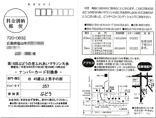 先日の土曜日には、エントリーしています「ぶどうの里ふれあいマラソン大会」のナンバーカード引換券が届いておりまして、なんとか出なくては…との想いが強かったのですけど、今回ばかりは初めてエントリー済みのマラソン大会への棄権を余儀なくされてしまいそぅです(^-^;