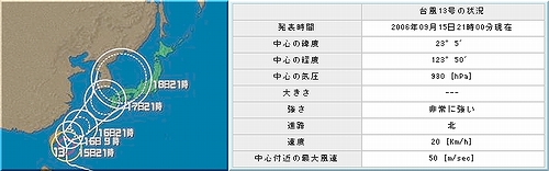 台風13号が近付いていますけど、勢力は結構大きいのですねぇ(^-^;