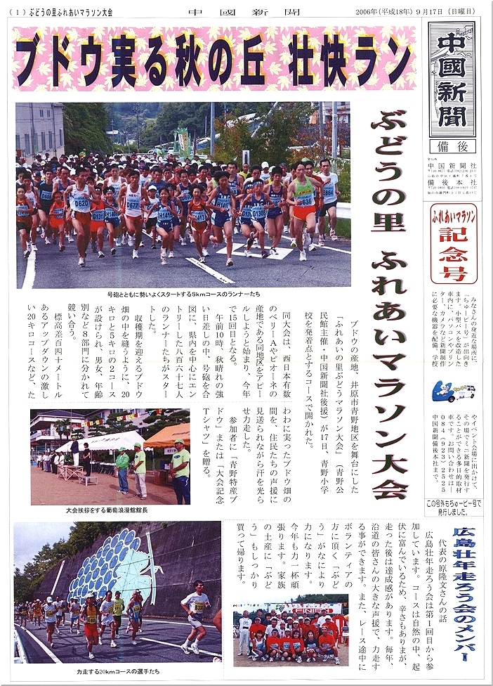20kmの部のトップランナーのゴール待ちをしています間に、中国新聞sanから頂きました『ふれあいマラソン記念号』を手に眼を通していますと、大変懐かしいお名前が眼に入ってしまいましたよ(^_^)v