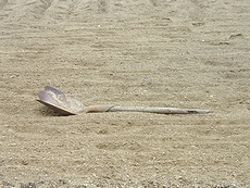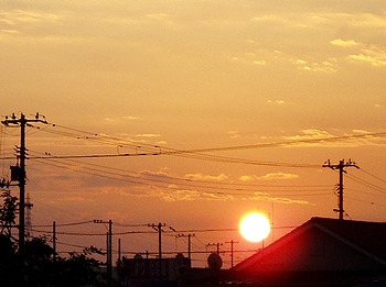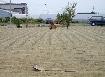 (左)今朝の朝日は実にキレイでありました(^.-)☆ (右)畑に無造作に放置されましたスコップと一輪車…何となく眼が向きました(^-^)