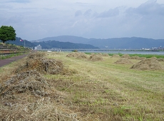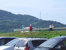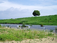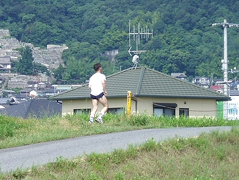 (左)暑い中をジョギングしておられます方が(^.-)☆ 土手でなく河川敷を走られましたらイィのに…