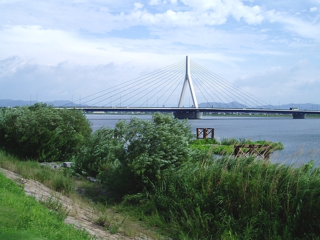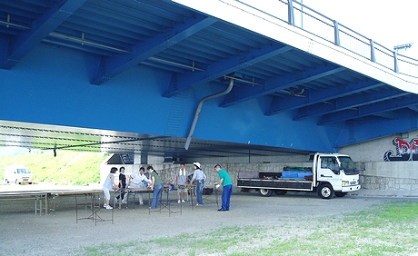 (左)芦田川大橋です (右)芦田川大橋の下ではバーベキューの準備でもしておられますのかも(^.-)☆