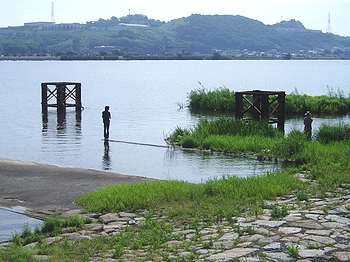 (左)競輪選手の皆様がトレーニングで河口堰方向に向かっておられました(^.-)☆