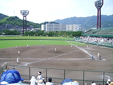 午後二時半から、広島市民球場で広―五日市、福山市民球場で尾道商―大門があり、熱戦の火ぶたを切った。