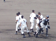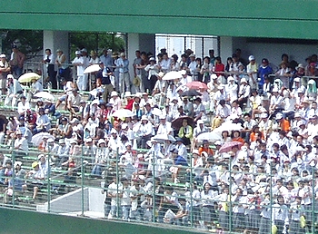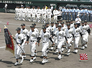 開会式は午後零時半から、広島市民球場で65校が参加してあった。プラカードを掲げた各校は昨年の優勝校、高陽東を先頭に入場行進し、同校の青木辰徳主将が優勝旗を返還した。広島県の山本航三県民生活部長が藤田雄山知事の祝辞を代読。音戸の山田雄一主将が力強く選手宣誓した。