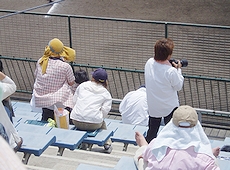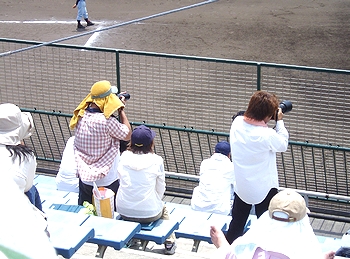 (右)このお二人のカメラマンは、しきりに三原高校の選手を撮っておられました(^.-)☆