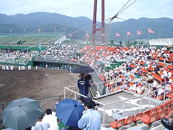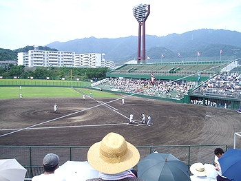 2日続きの降雨で、福山市民球場での「第88回全国高校野球広島県大会」の試合もズレ込んでおりまして、今日・土曜日はラッキーにも地元強豪の盈進高校と優勝候補の一角の広陵高校との試合観戦が可能となりました(^.-)☆