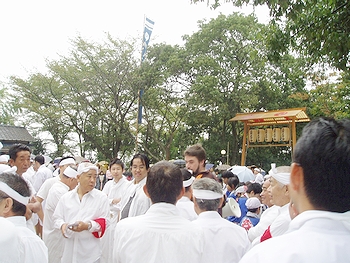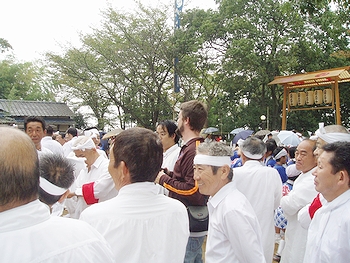 3名ばかり外人さんが見物に来ておられましたけど、特に御輿には関心をお持ちのようでしたネ(^.-)☆