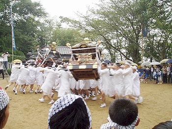 今日のメインは、まず八幡神社で御輿を廻し、それから各地区の町内を御輿で練り歩きとなります(^_^)v この御輿が実に重いのですねぇ(^-^;