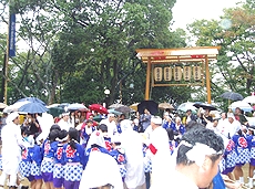 天気予報では降雨の確率70%の空模様で、朝から小雨が降り続いておりましたけど、この程度では当然祭りは開催です。