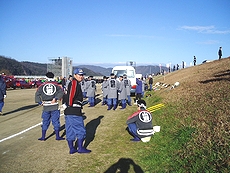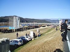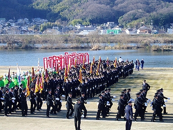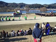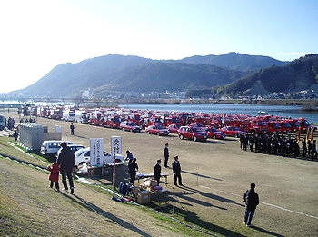 出初め式は、草戸大橋下の河川敷でA.M.9:00より始まりますから、到着します頃には既に始まっているものと思います。