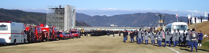 毎年、航空消防隊の実技訓練も開催され、芦田川河口上空でヘリコプターが待機しておりましたけど、急遽、救援業務が入ってきましてそちらに急行。で、この日のヘリコプーターによります実技訓練は中止となってしまいました(^-^;