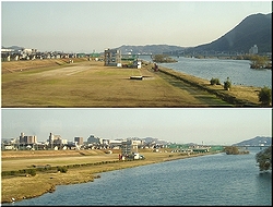 こぅして見ますと、一見美しい芦田川。ですが、水質向上にはほど遠い芦田川。せめて、このノンビリとした景観だけは、いつまでも維持出来ましたら宜しいですネ(^-^)/"